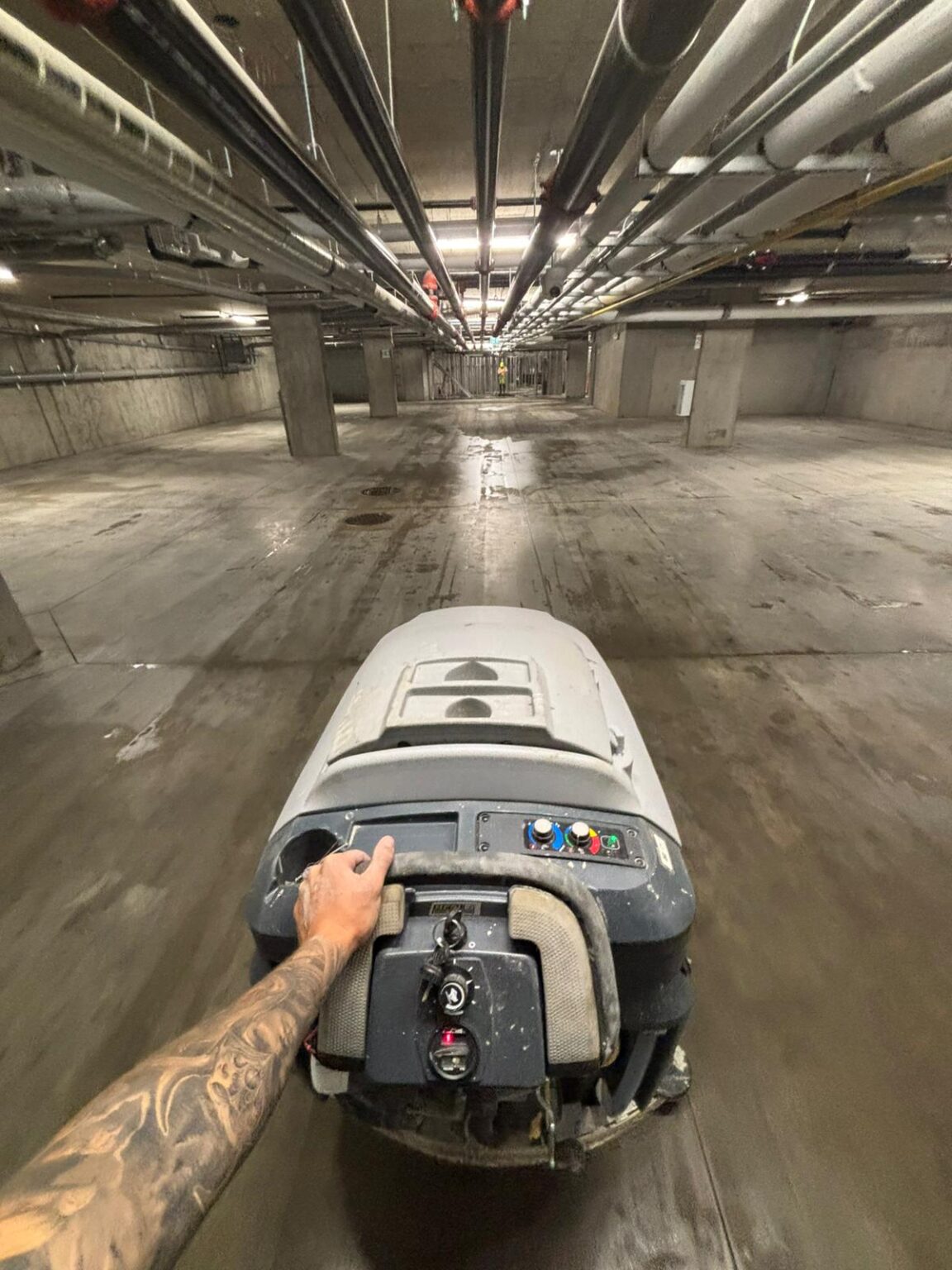 We use industrial-grade sweepers, high-powered pressure washing, and degreasers to remove dirt, oil stains, and grime. Our methods ensure a thorough clean without damaging the concrete or surrounding structures.
